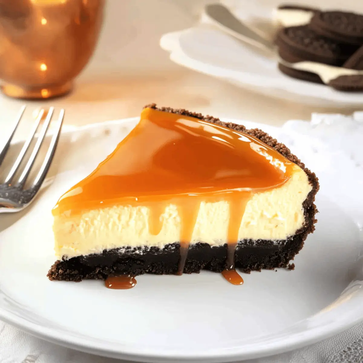 Creamy Salted Caramel Cheesecake with a Crunchy Oreo Crust