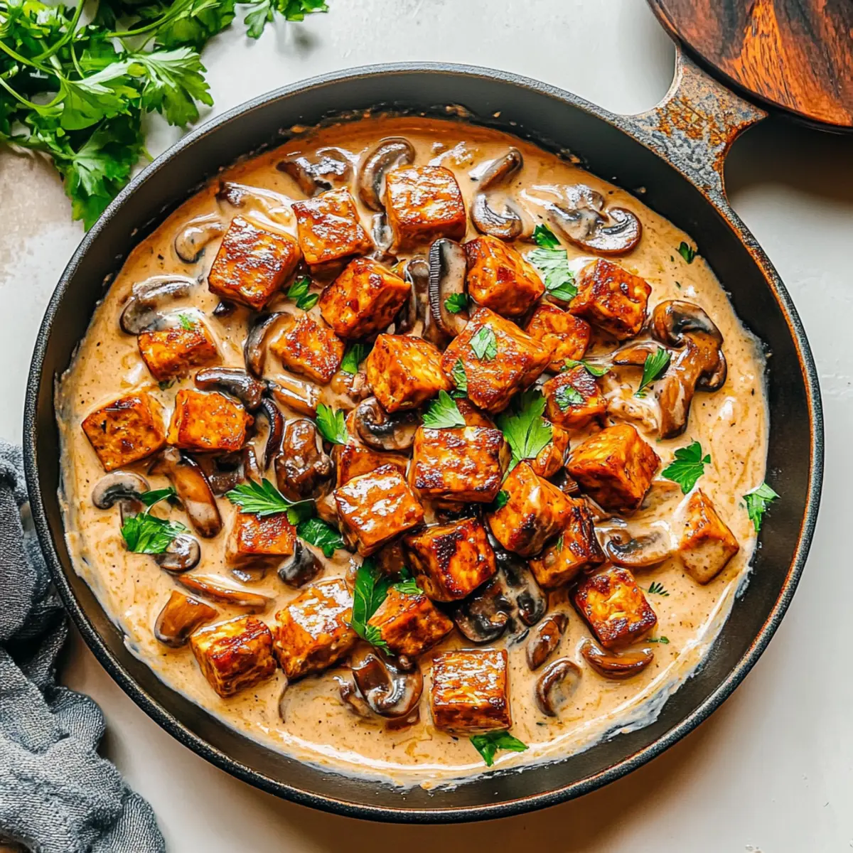 Sautéed Tempeh in Creamy Mushroom Coconut Sauce Delight