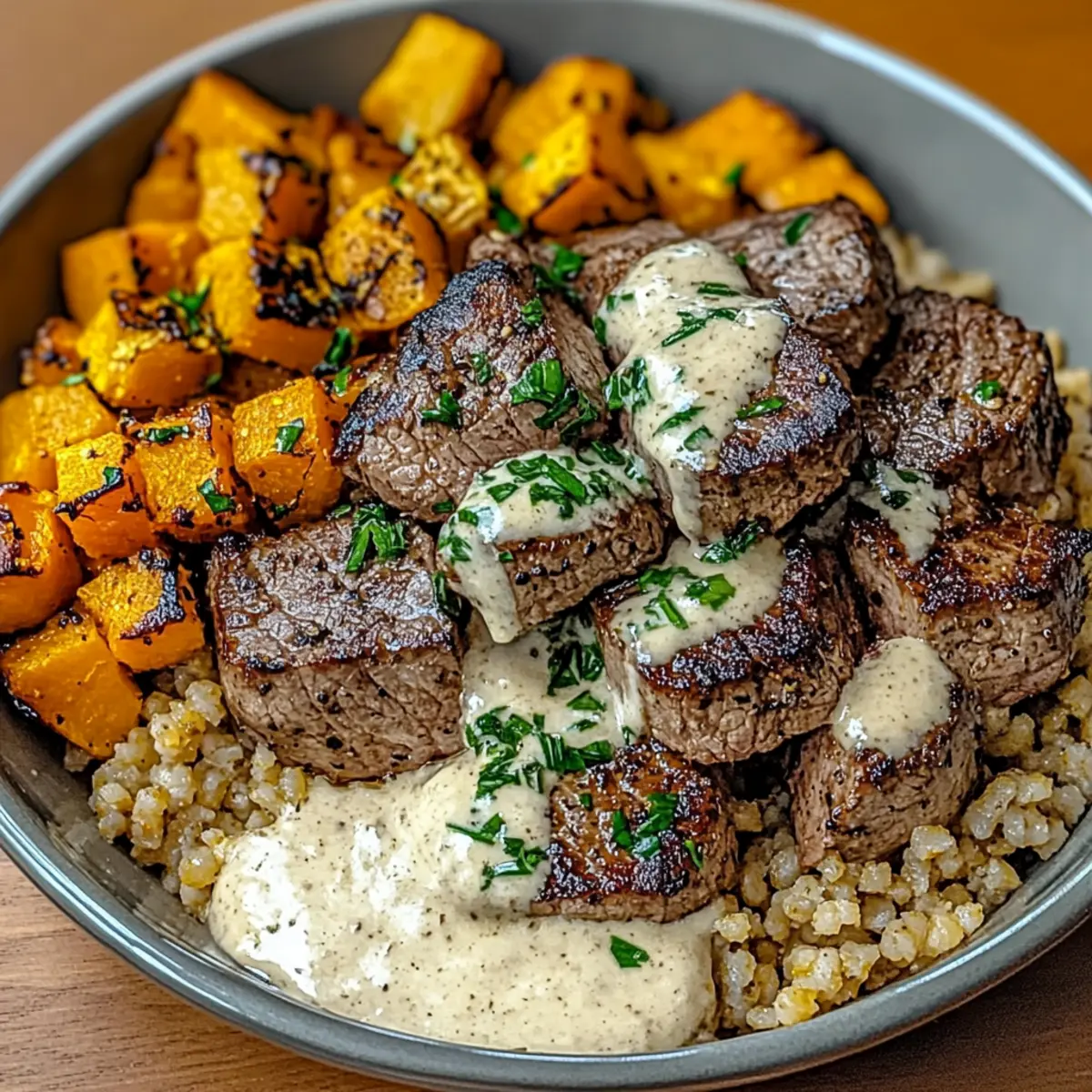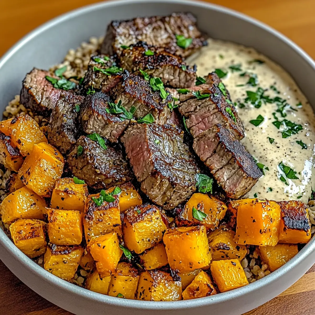 Savory Butternut Squash and Garlic Herb Steak Bowls Delight