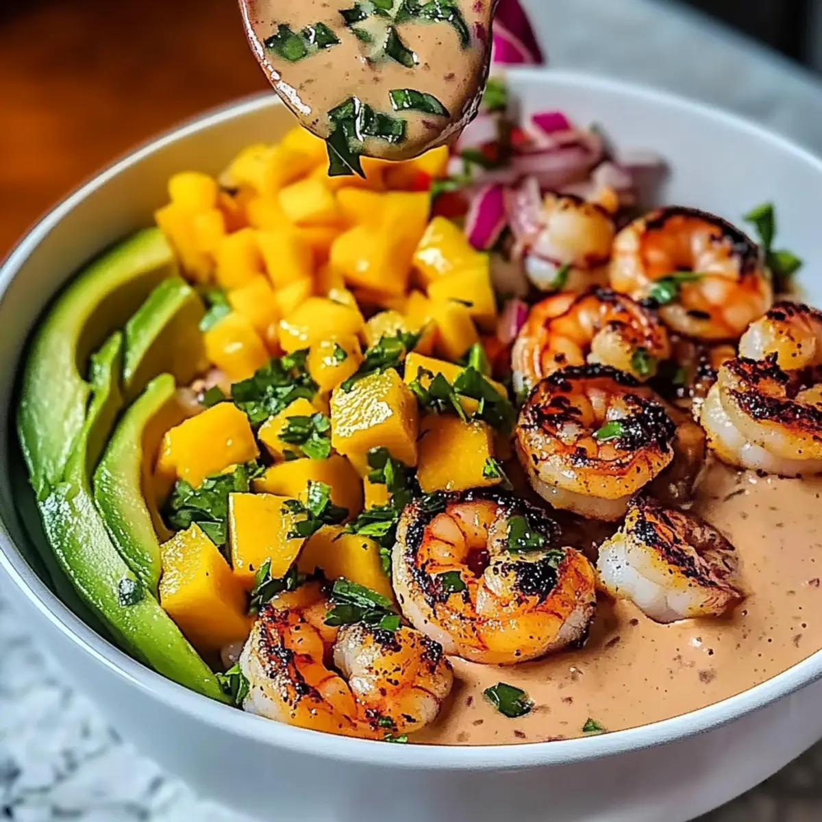 Drizzle extra fresh lime juice and a touch of chili sauce over each bowl to elevate the flavors of your shrimp and avocado bowls. This final touch not only enhances the zestiness but also adds a slight kick that perfectly complements the creamy avocado and sweet mango salsa. Serve immediately and enjoy the delightful mix of tastes!