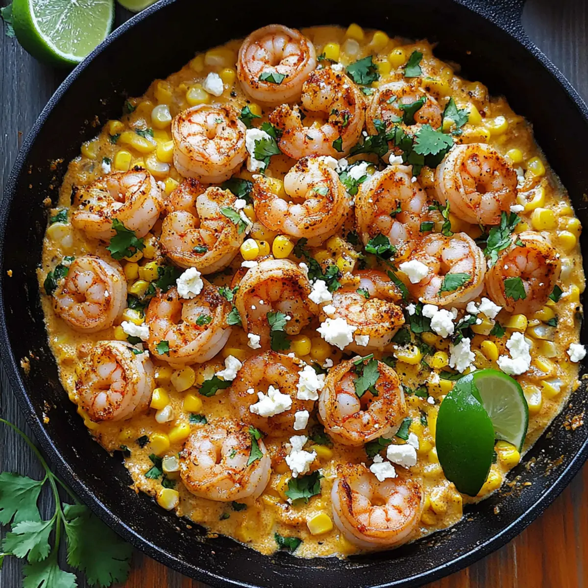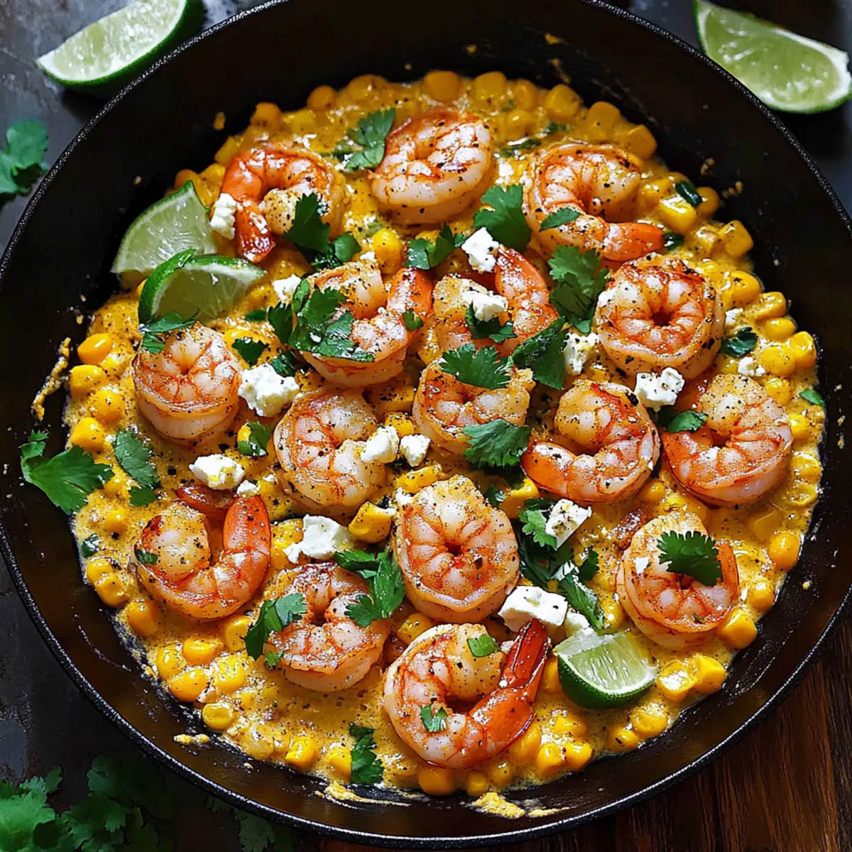 - Squeeze the juice of one lime half into the creamed corn mixture. Return the cooked shrimp to the skillet, gently mixing to combine. Taste and adjust the seasoning if desired.