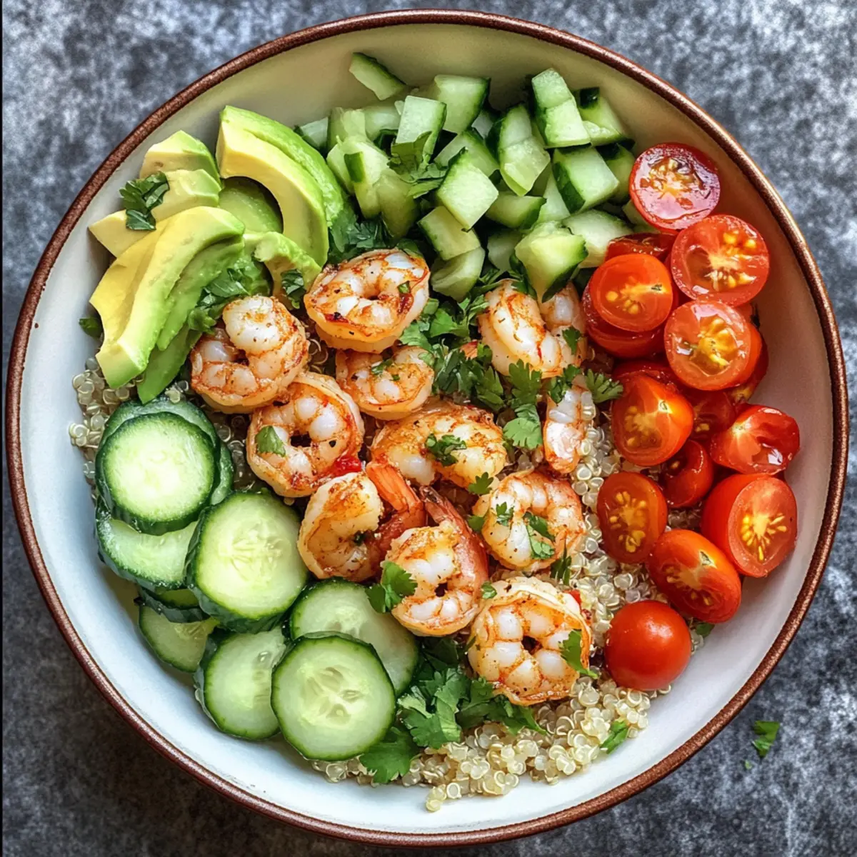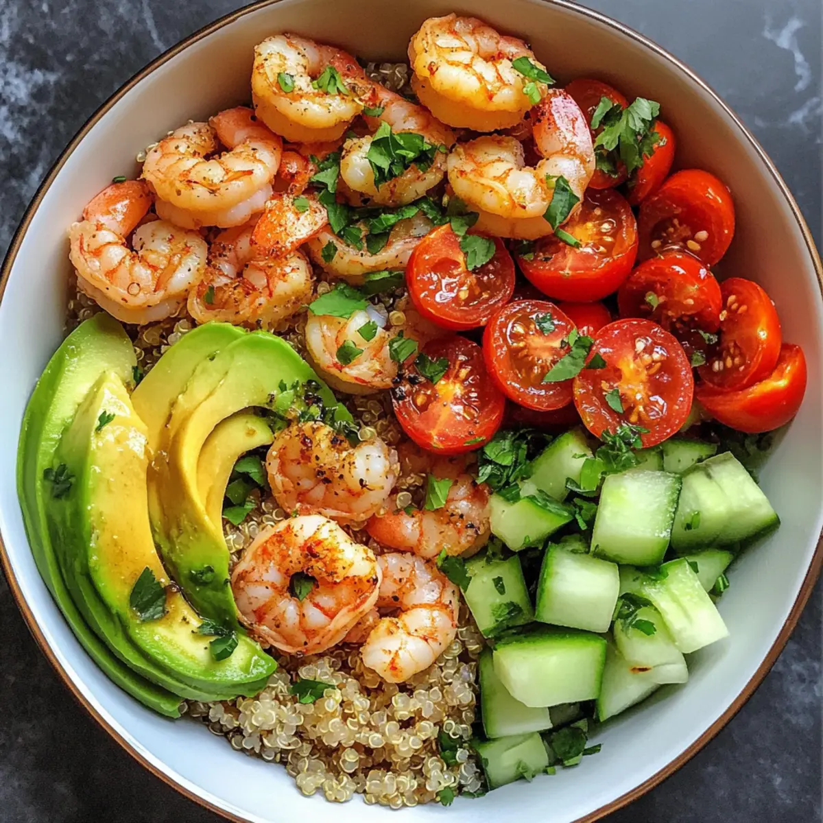 • Chill for Freshness: Refrigerate components separately to preserve textures; quinoa lasts up to 5 days, while shrimp is best within 3 days.