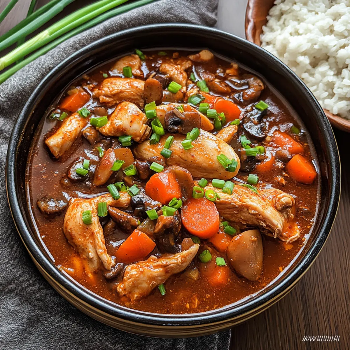 Ladle the steaming stew into bowls, and sprinkle with freshly chopped spring onions for a pop of color and crunch. This garnish not only adds a fresh flavor but enhances the visual appeal of your comforting dish. Serve hot alongside rice, quinoa, or crusty bread to soak up that luscious sauce.
