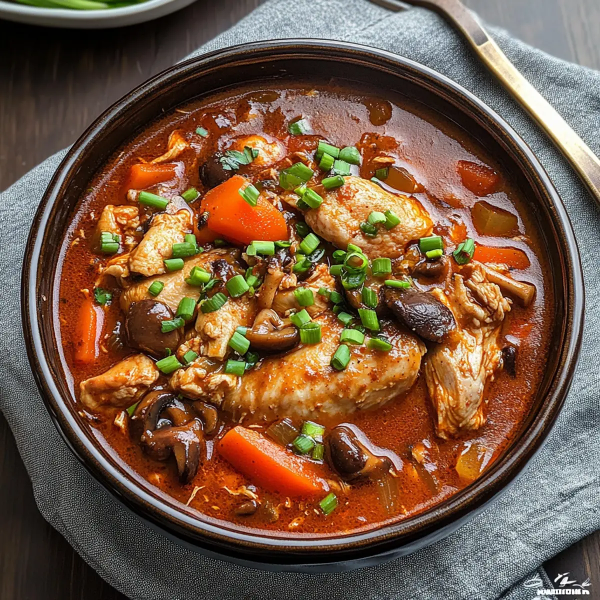 These Slow Cooker Korean Chicken Stew meal prep tips are perfect for busy home cooks! You can chop the onion, carrot, and mushrooms up to 24 hours in advance, storing them in an airtight container in the refrigerator to maintain their freshness and prevent browning. Additionally, you can combine the chicken thighs, gochujang, soy sauce, brown sugar, sesame oil, and chicken stock in the slow cooker, refrigerating this mixture for up to 3 days before cooking. When you’re ready to serve, simply transfer everything to the slow cooker, set it to your desired cooking time, and enjoy a hearty meal with minimal effort. Don’t worry; your stew will taste just as delicious!
