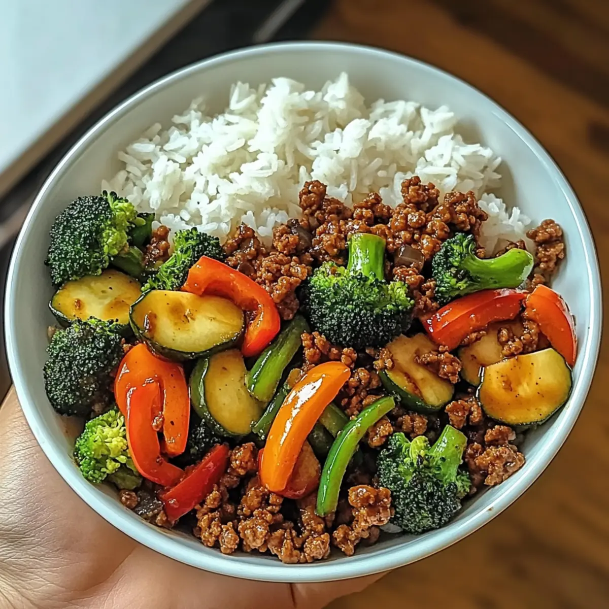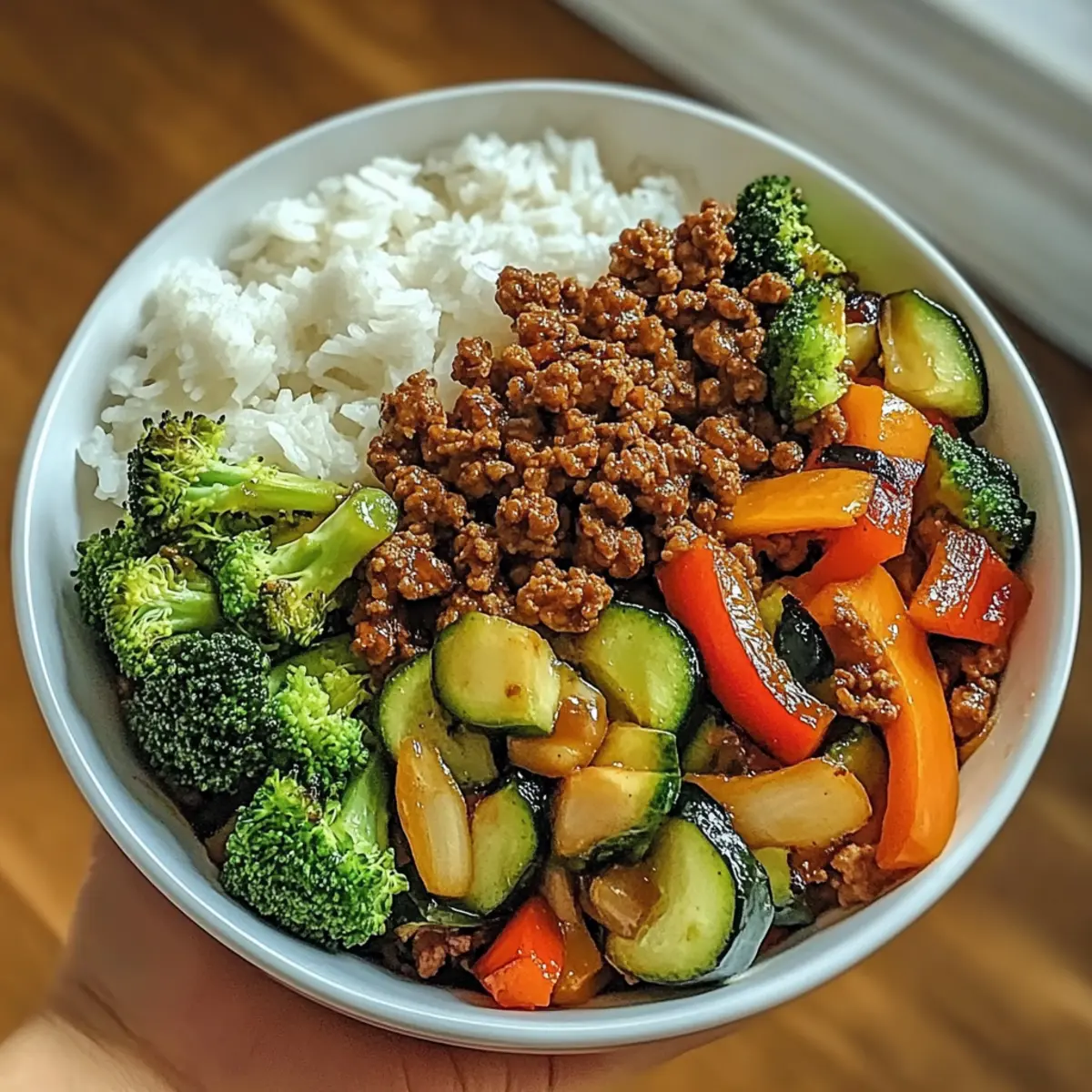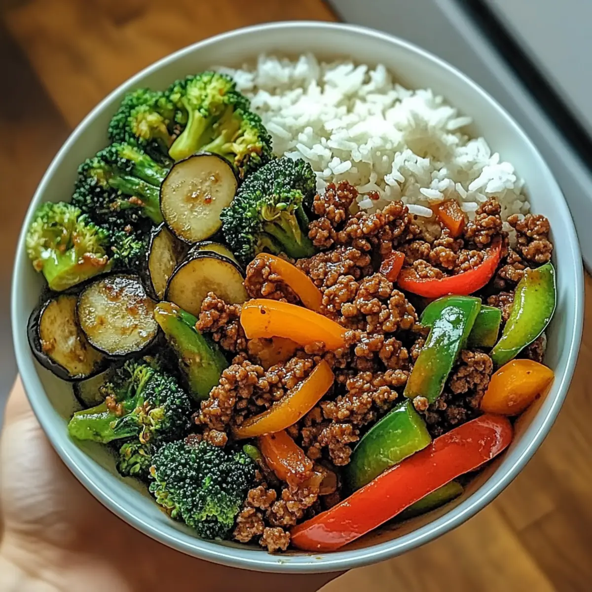 This Spicy Ground Beef Stir Fry Bowl is a quick, flavorful dish that combines juicy beef, fresh veggies, and a sweet-spicy sauce.