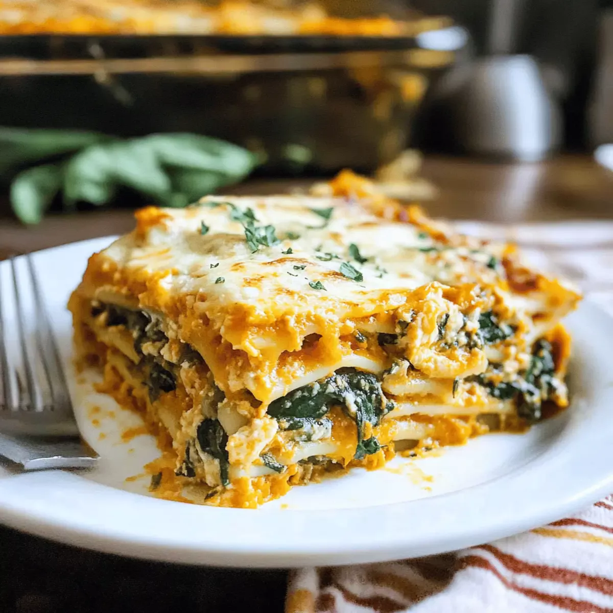 Comforting, Hearty Meal: This lasagna combines creamy pumpkin and fresh spinach, creating a luscious dish everyone will love.
