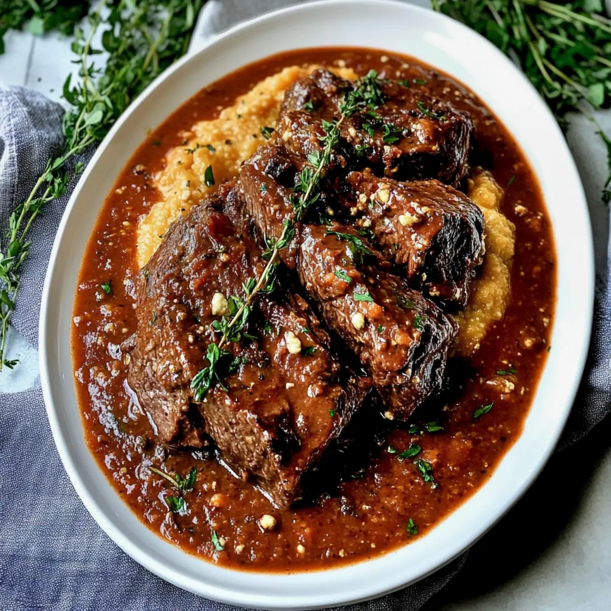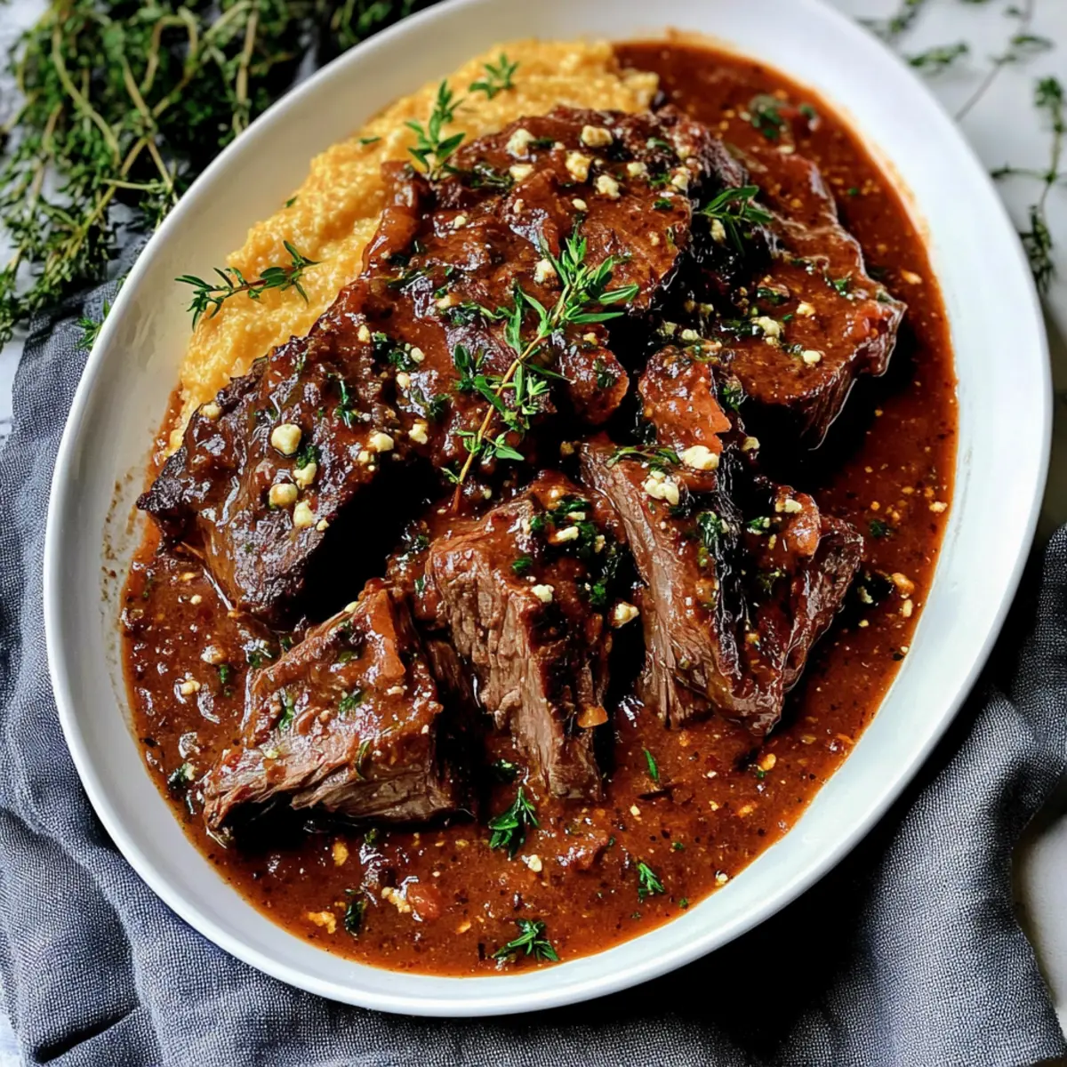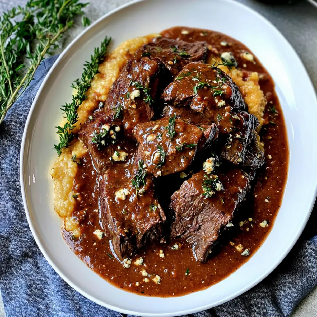 Experience this Savory Stracotto, a melt-in-your-mouth Italian pot roast with creamy Gorgonzola polenta.