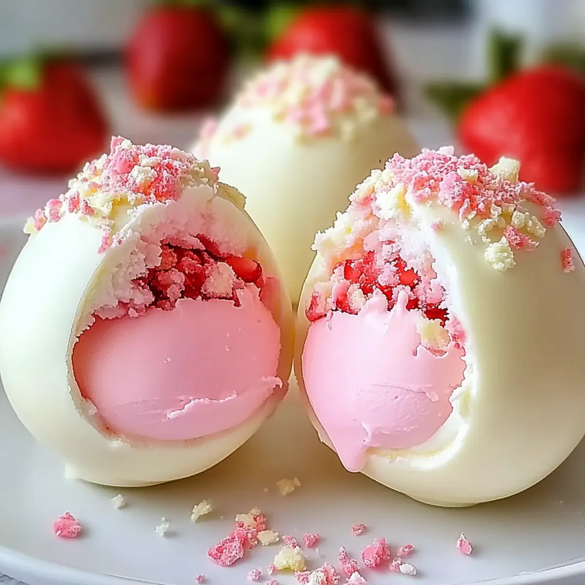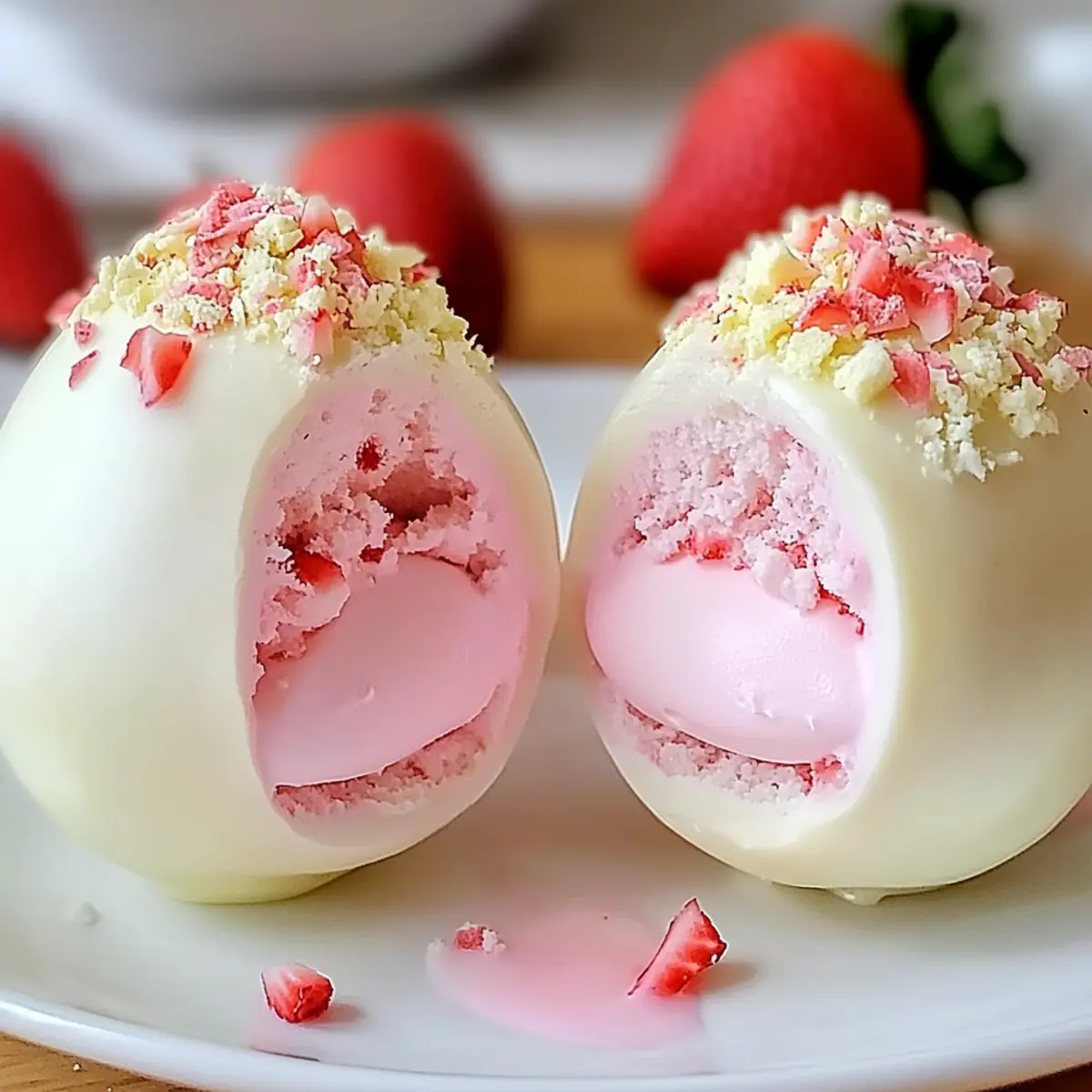 Whipped Coconut Cream: For a dairy-free alternative, serve these bombs with whipped coconut cream for a tropical twist. The light, airy cream beautifully complements the strawberry filling.