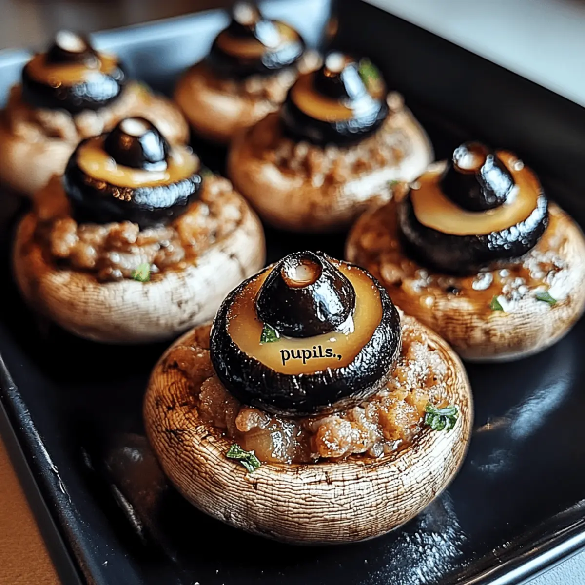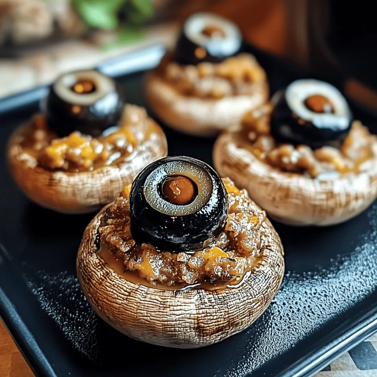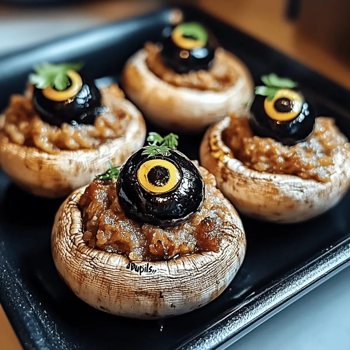 Serving Tip: For added flavor, serve your Stuffed Mushroom Eyeballs with a drizzle of balsamic glaze or alongside marinara sauce for dipping.