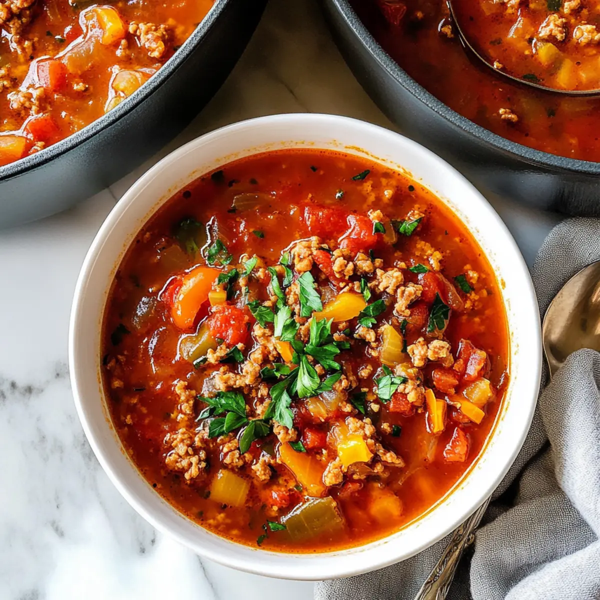 • Spice It Up: If you fancy a kick, add chopped jalapeños or your favorite hot sauce for an exciting twist on the classic stuffed pepper soup.