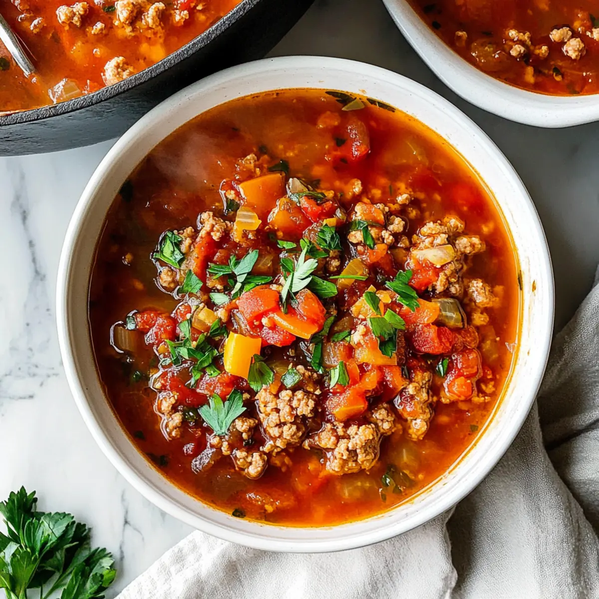 This hearty stuffed pepper soup combines lean beef, colorful peppers, and spices for a quick, comforting dinner that’s perfect for busy nights.