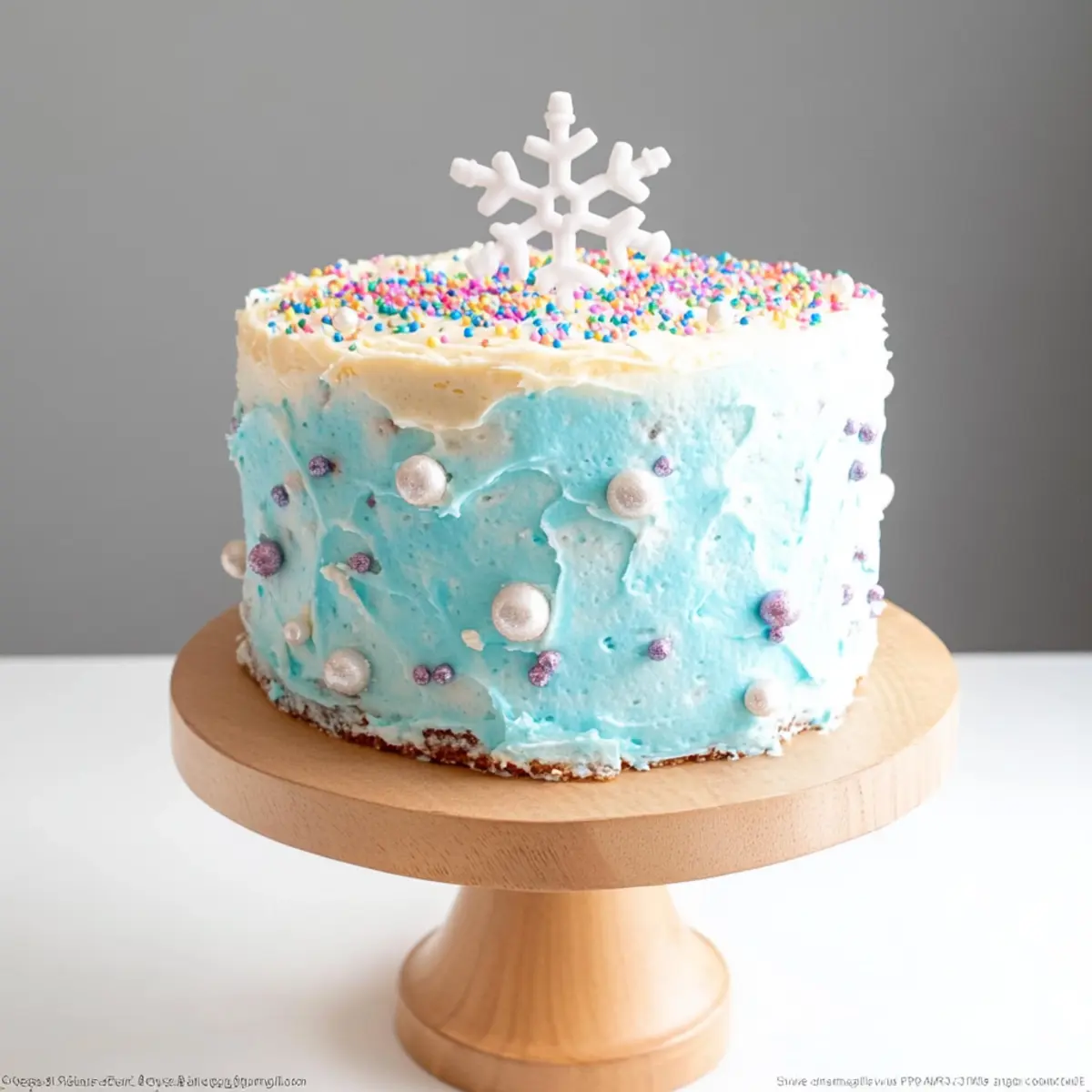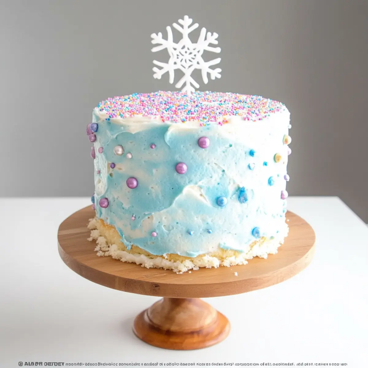 The more the merrier! You can get creative with your decorations. Try using colored sugar, edible glitter, or even chocolate chips to craft snowflakes! Unique shaped sprinkles can add an extra whimsical touch to your cake while still playing into the winter theme beautifully.