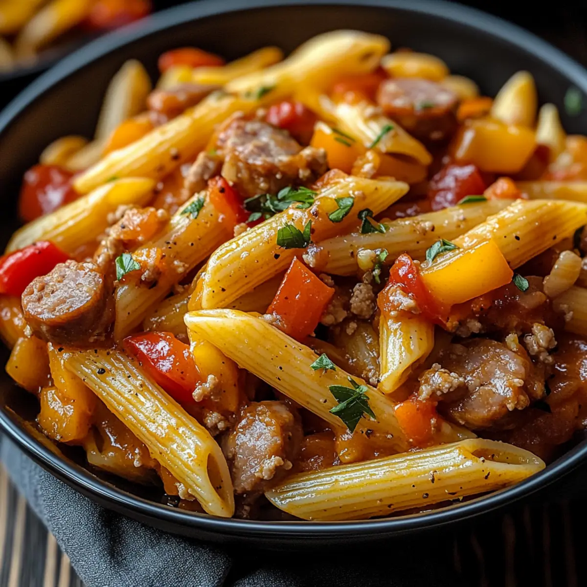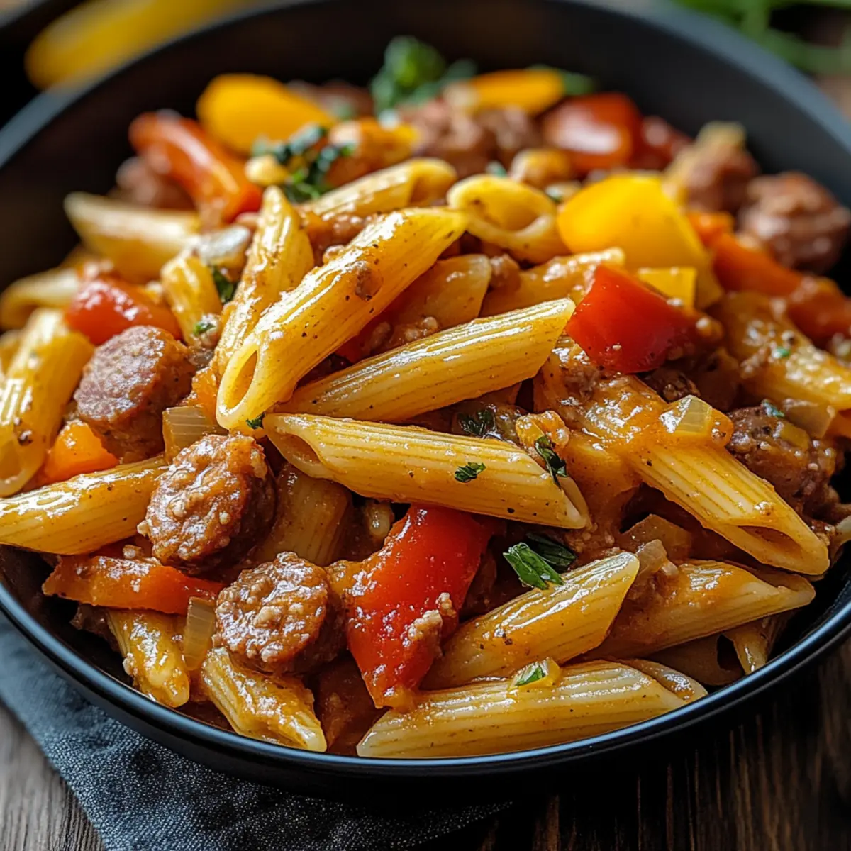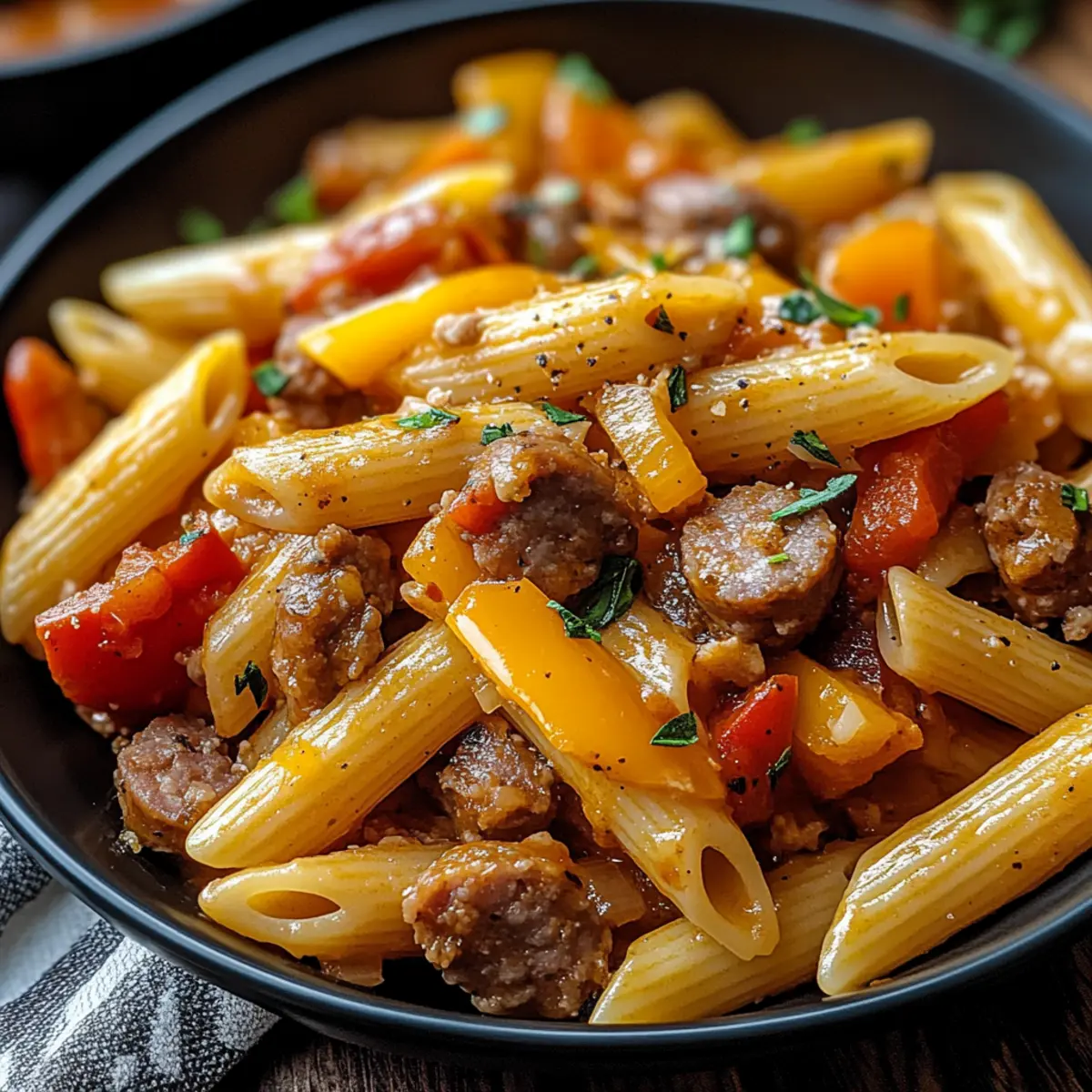 Discover the rich flavors of Sweet Pepper & Sausage Pasta in this comforting and quick dish perfect for weeknight dinners.