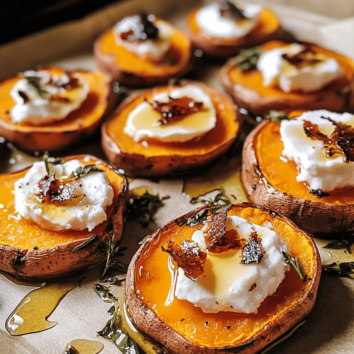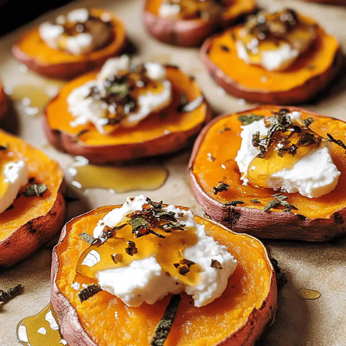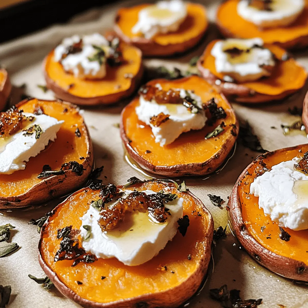 As I stood in my kitchen, the sweet aroma of roasting sweet potatoes wafted through the air, instantly transporting me to a cozy gathering with friends. This is precisely the delightful experience offered by my Elegant Sweet Potato Rounds with Goat Cheese. These appetizers harmonize the natural sweetness of roasted sweet potatoes with the creamy tang of goat cheese, making them a welcome addition to any table. Not only are they quick to prepare, but their versatility allows you to dress them up with different herbs, glazes, or toppings to impress your guests effortlessly. Imagine serving these beautiful bites as a sophisticated snack or a standout dish at your next party. What flavor combination will you try first?