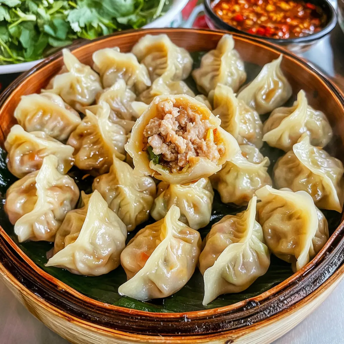 Savory Soy Sauce: A classic dipping companion that complements the flavorful filling, enhancing the authentic taste of the dumplings.