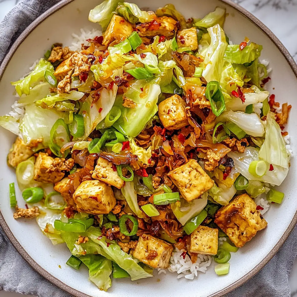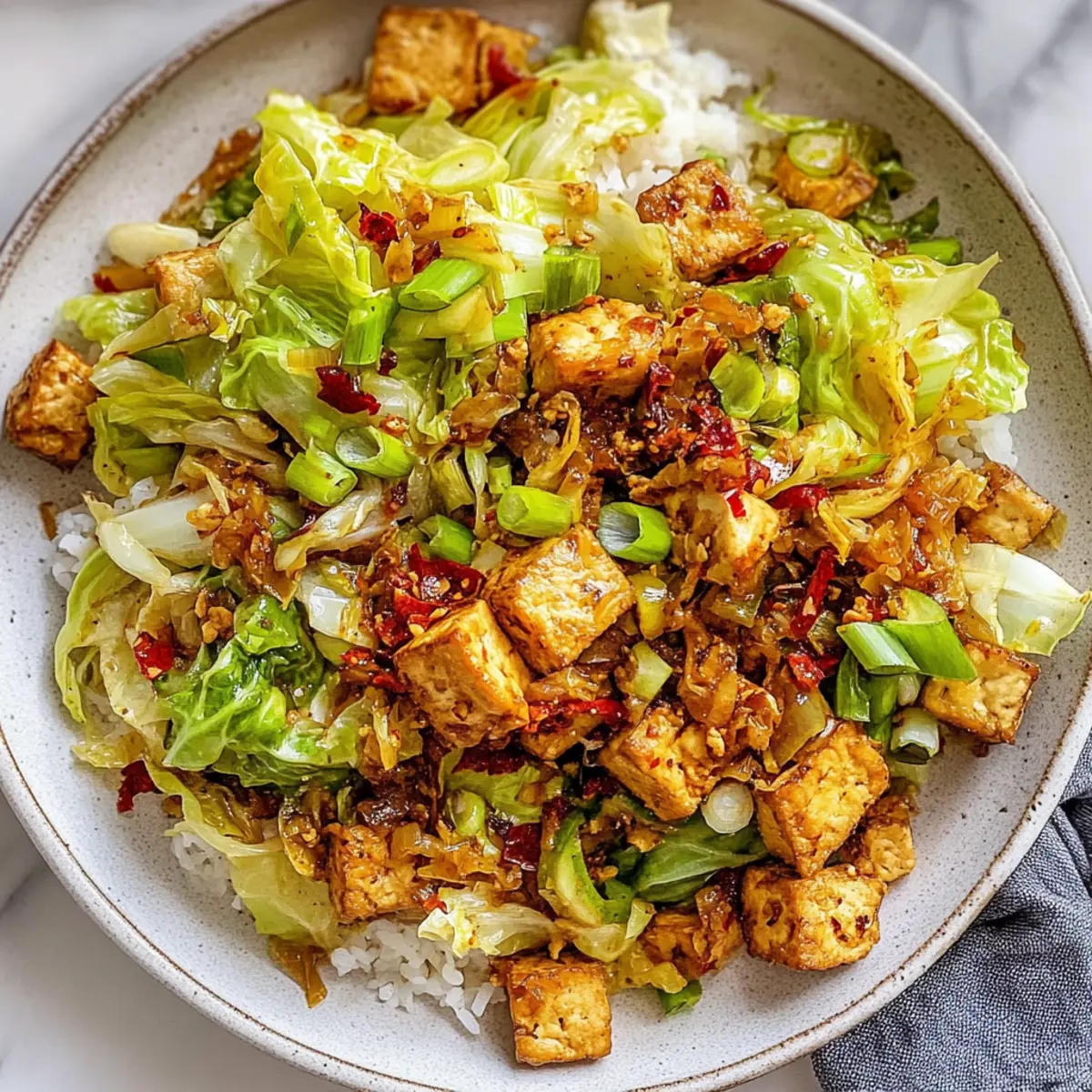 Quick preparation: In just 20 minutes, you’ll have a hearty meal that fits perfectly into your busy schedule. Nutrient-packed goodness: This dish combines high-quality protein from tofu and essential vitamins from cabbage, making it both satisfying and health-conscious. Versatile flavors: Customize it by adding your favorite veggies or proteins, such as chickpeas or seitan. Aromatic experience: The blend of garlic and ginger creates an enticing aroma, transforming your kitchen into a culinary paradise. Perfect for those looking to steer clear of fast food, this stir fry will make your meals feel special every time!
